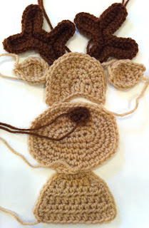 Row 2: Ch 2, working on other side of ch, hdc in each ch around shape, working 5 hdc in antler tips. Finish off and weave in ends.