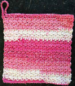 Row 27: Ch 1, turn, sc in each sc across, ch 16 (for hanger), join with sl st to last sc made.