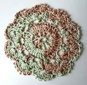 Designer Carol Showers wrote: ” My Great-Nephew, Jake, who is 5, loves anything camouflage and he likes crocheted washcloths for his bath. This one is for Jake.”